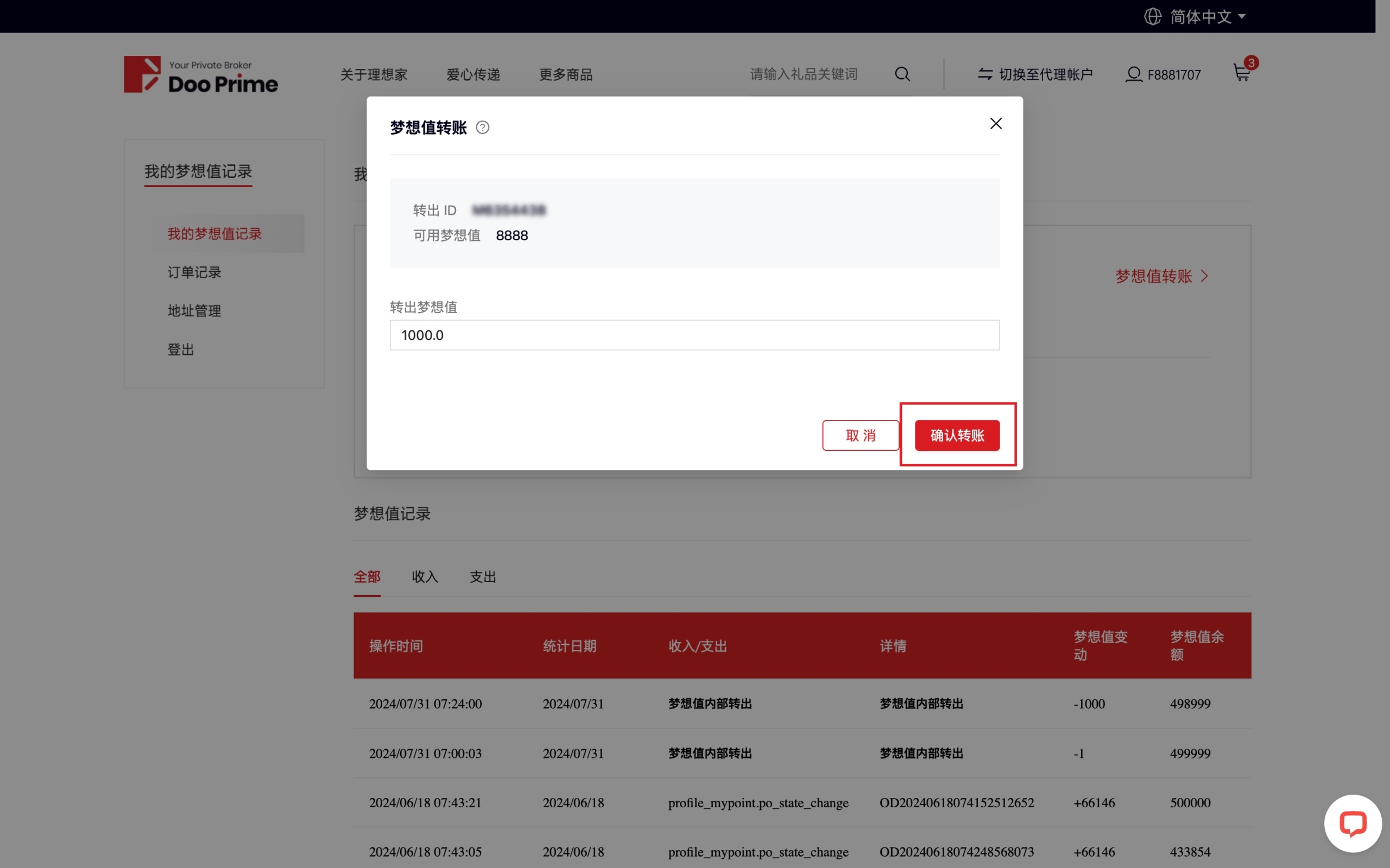 Sus Dream Points se pueden transferir entre clientes individuales con el mismo nombre o cuentas de agentes con el mismo nombre y usarse para canjear regalos o servicios proporcionados en el centro comercial, pero no se pueden transferir, descontar ni intercambiar con otros clientes.